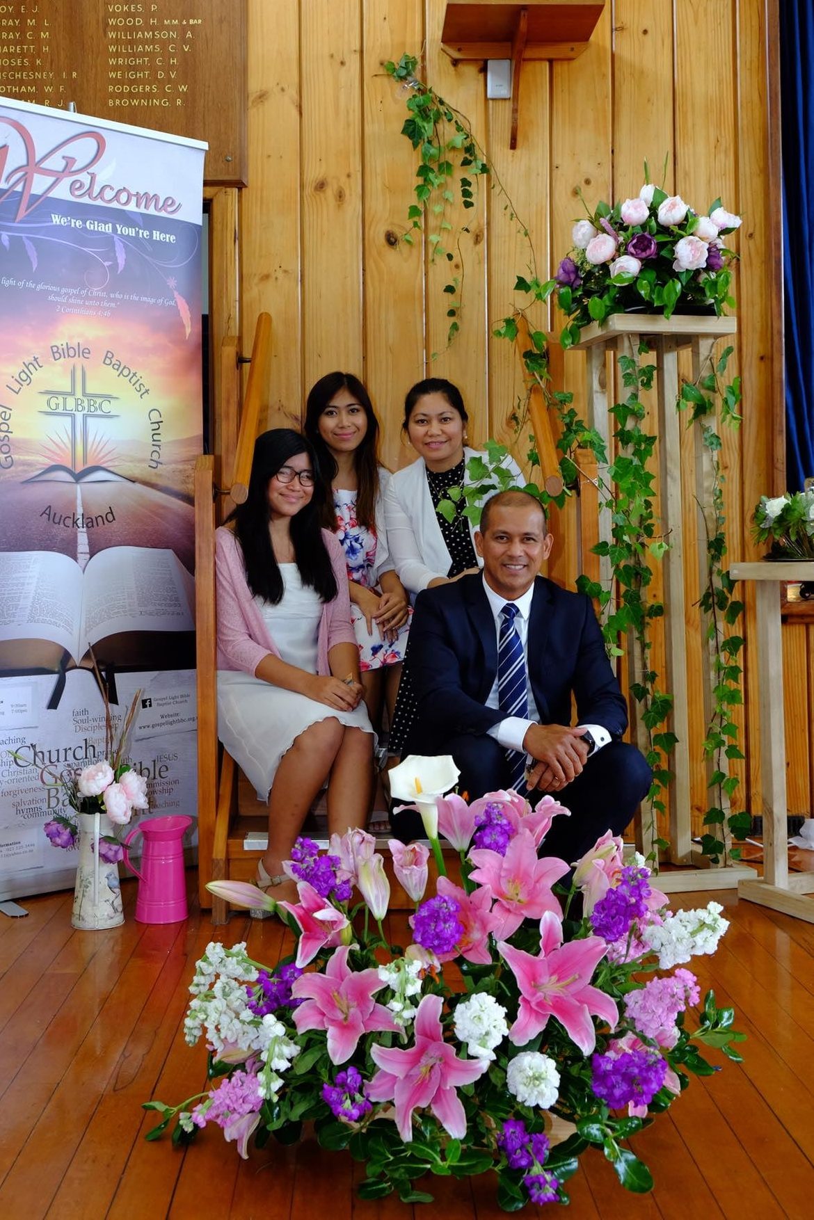 On December 29, 1998, he married Juliet, and together the Lord has blessed them with two daughters. In 2009, Pastor Flores and his family moved to New Zealand, where he became a pioneering and charter member of Gospel Light Bible Baptist Church in Auckland. In September 2014, he was officially called to the pastorate of the church, where he continues to serve the Lord and lead the congregation faithfully to this day.